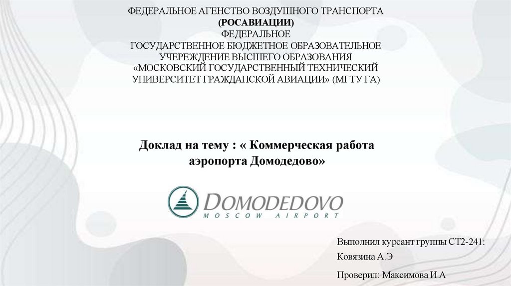 УНИВЕРСИТЕТ ГРАЖДАНСКОЙ АВИАЦИИ» (МГТУ ГА)