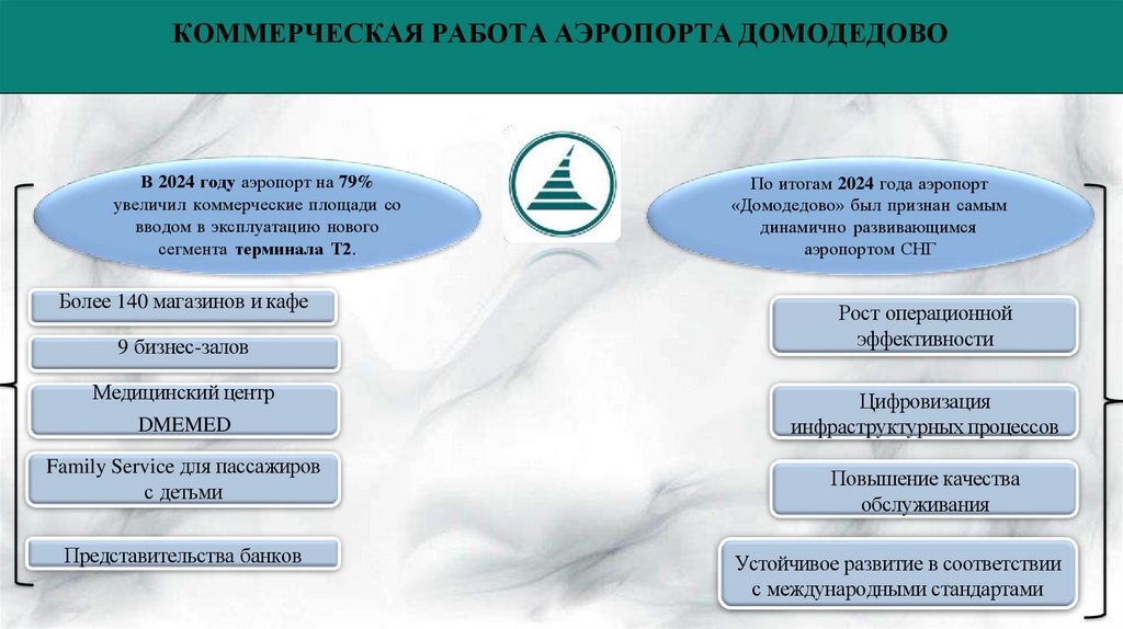 КОММЕРЧЕСКАЯ РАБОТА АЭРОПОРТА ДОМОДЕДОВОВ 2024 году аэропорт на 79%