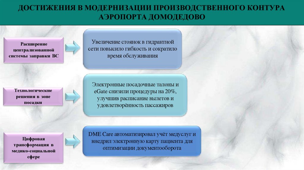 ДОСТИЖЕНИЯ В МОДЕРНИЗАЦИИ ПРОИЗВОДСТВЕННОГО КОНТУРААЭРОПОРТА ДОМОДЕДОВО