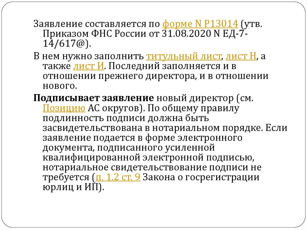 11. Как составить заявление о внесении изменений в ЕГРЮЛ в связи со сменой директора