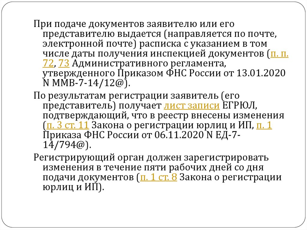 (п. 3 ст. 11 Закона о регистрации юрлиц и ИП, п. 1