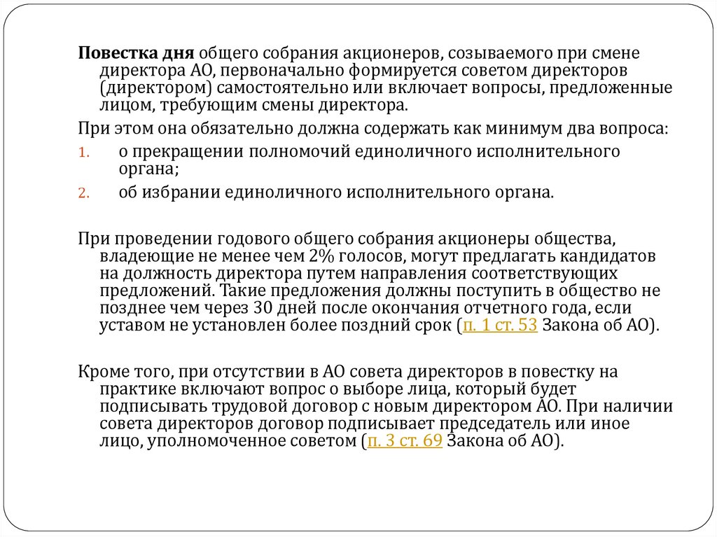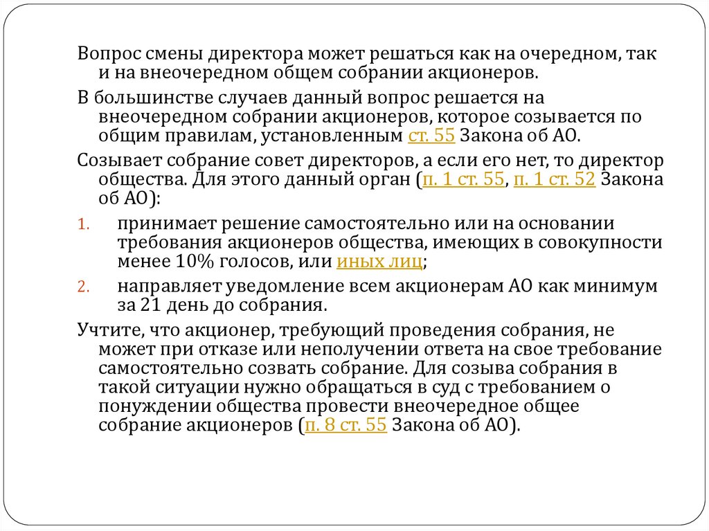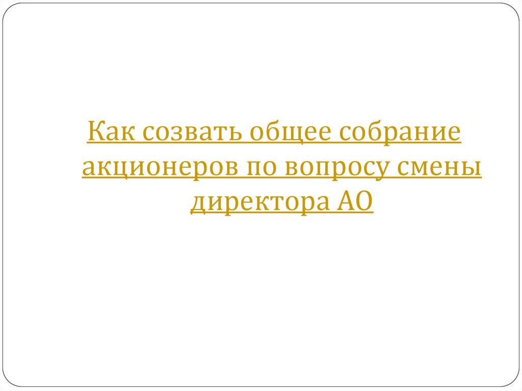 4. Как созвать общее собрание акционеров по вопросу смены директора АО