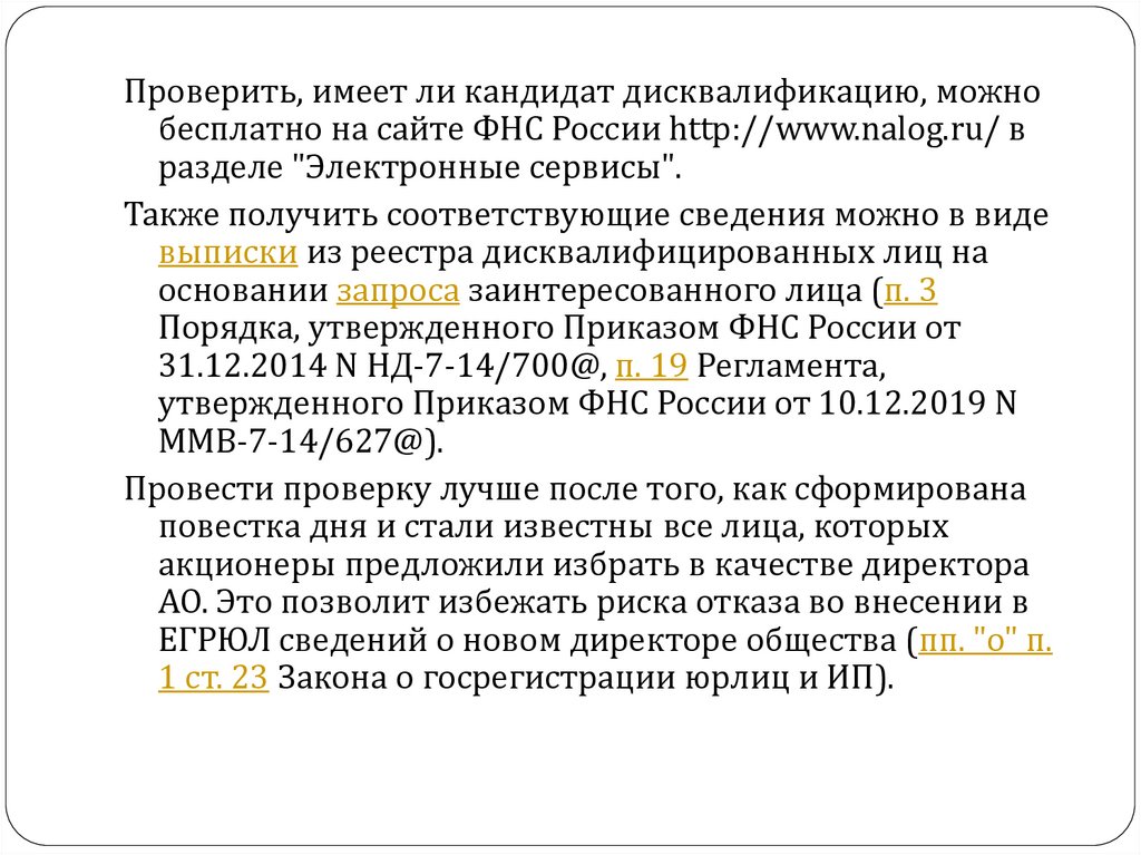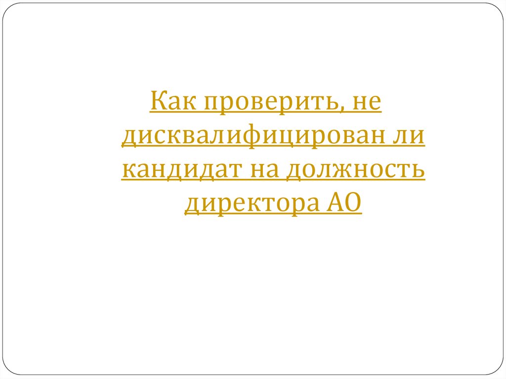7. Как проверить, не дисквалифицирован ли кандидат на должность директора АО