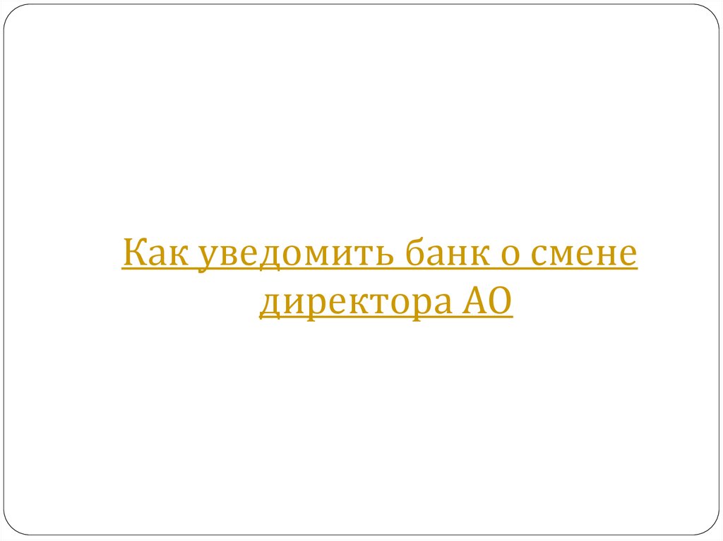 При смене директора АО необходимо уведомить банк, вкотором у организации открыты счета и директор