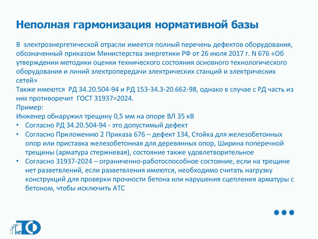 Неполная гармонизация нормативной базыВ электроэнергетической отрасли имеется полный перечень дефектов оборудования,