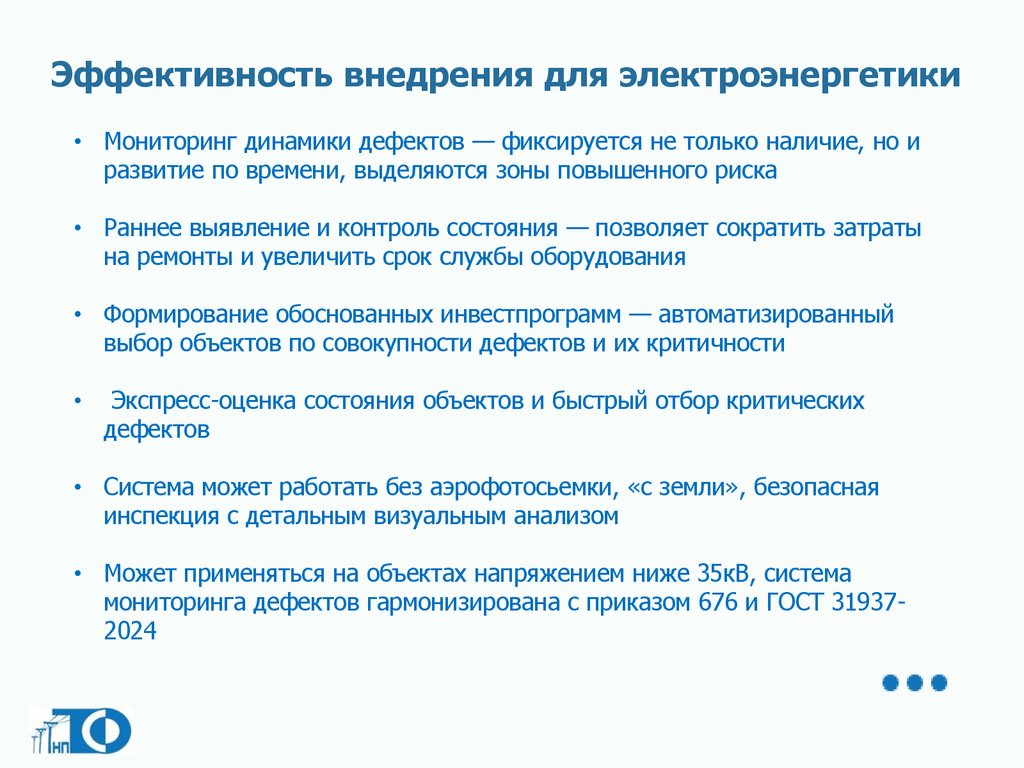 Эффективность внедрения для электроэнергетики• Мониторинг динамики дефектов — фиксируется не только наличие, но и