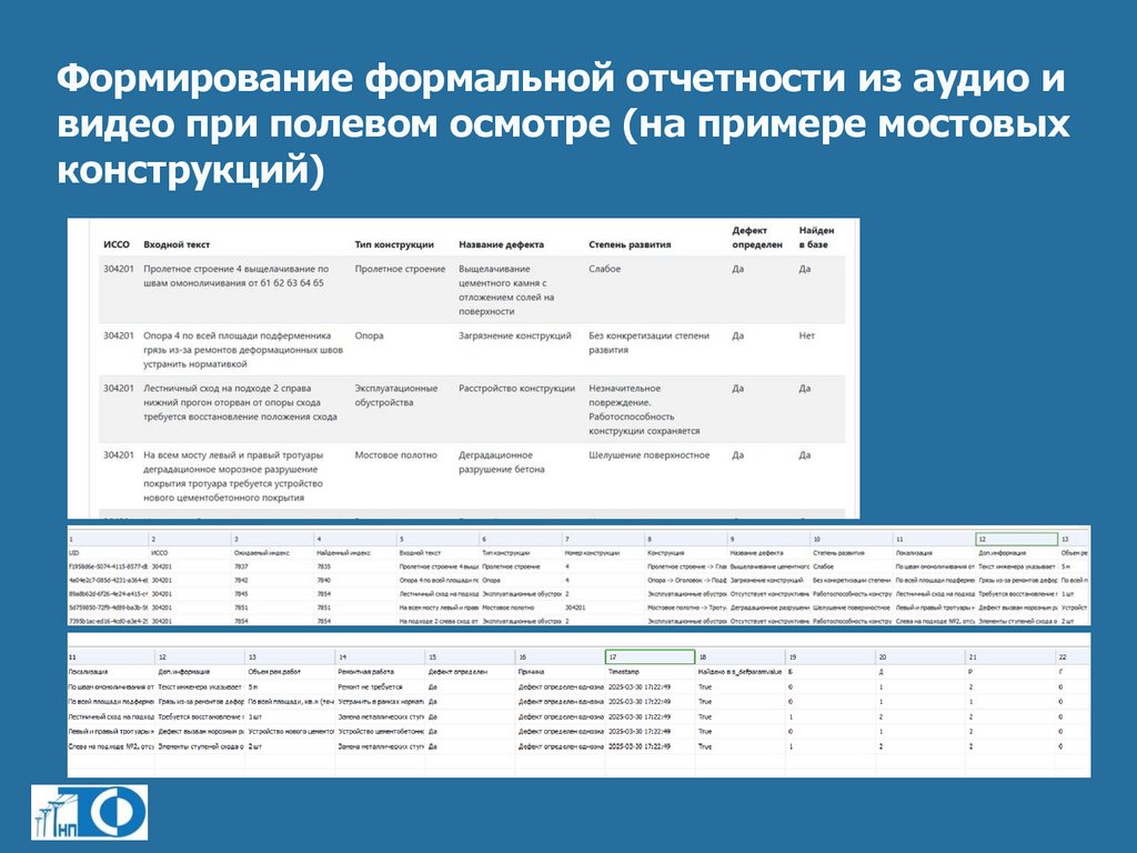 Формирование формальной отчетности из аудио ивидео при полевом осмотре (на примере мостовых