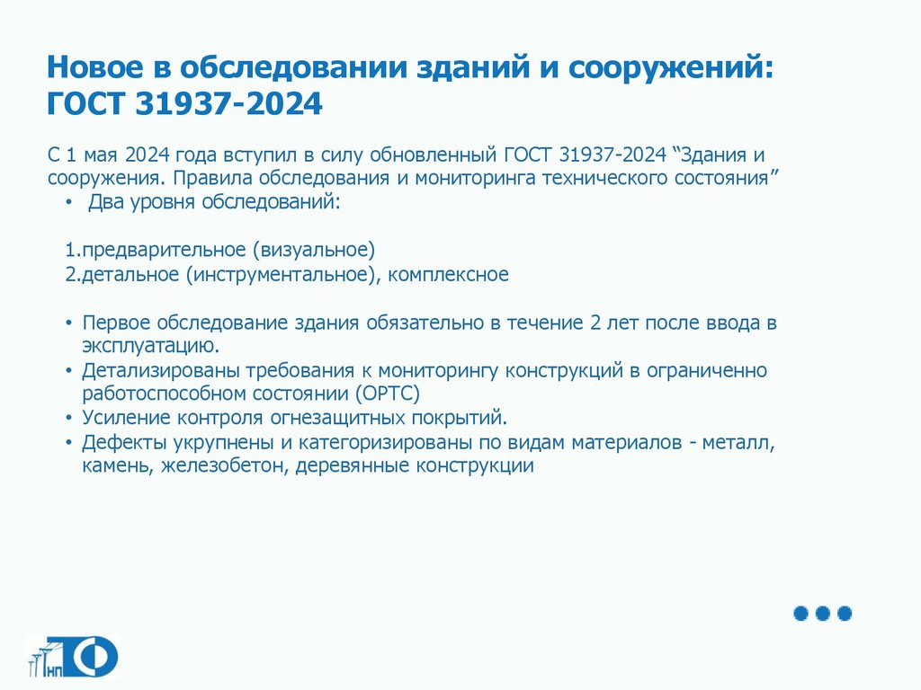 Новое в обследовании зданий и сооружений:ГОСТ 31937-2024