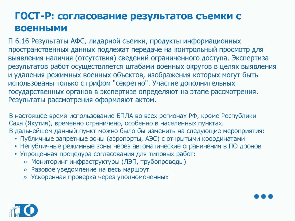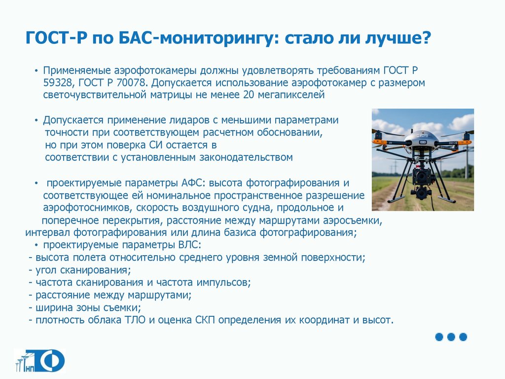 ГОСТ-Р по БАС-мониторингу: стало ли лучше?• Применяемые аэрофотокамеры должны удовлетворять требованиям ГОСТ Р