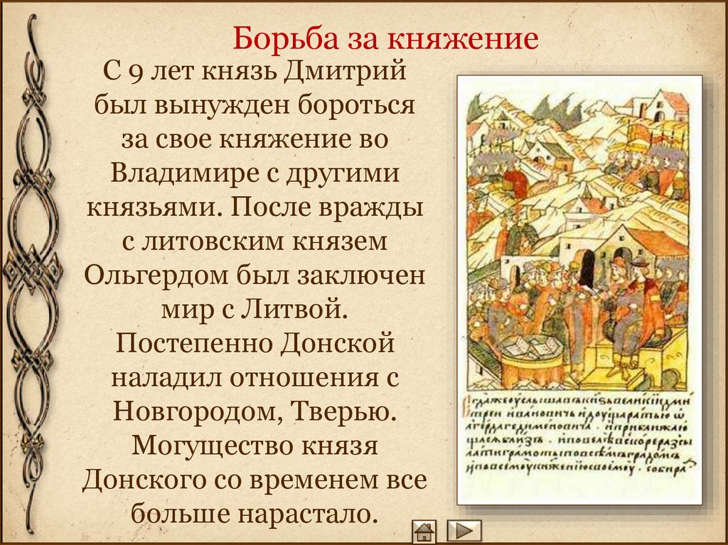 Борьба за княжениеВ 1363 году Дмитрий Донской стал