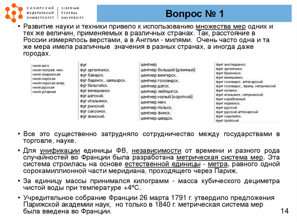 3. Тема № 1 «Основы метрологии» Занятие № 1