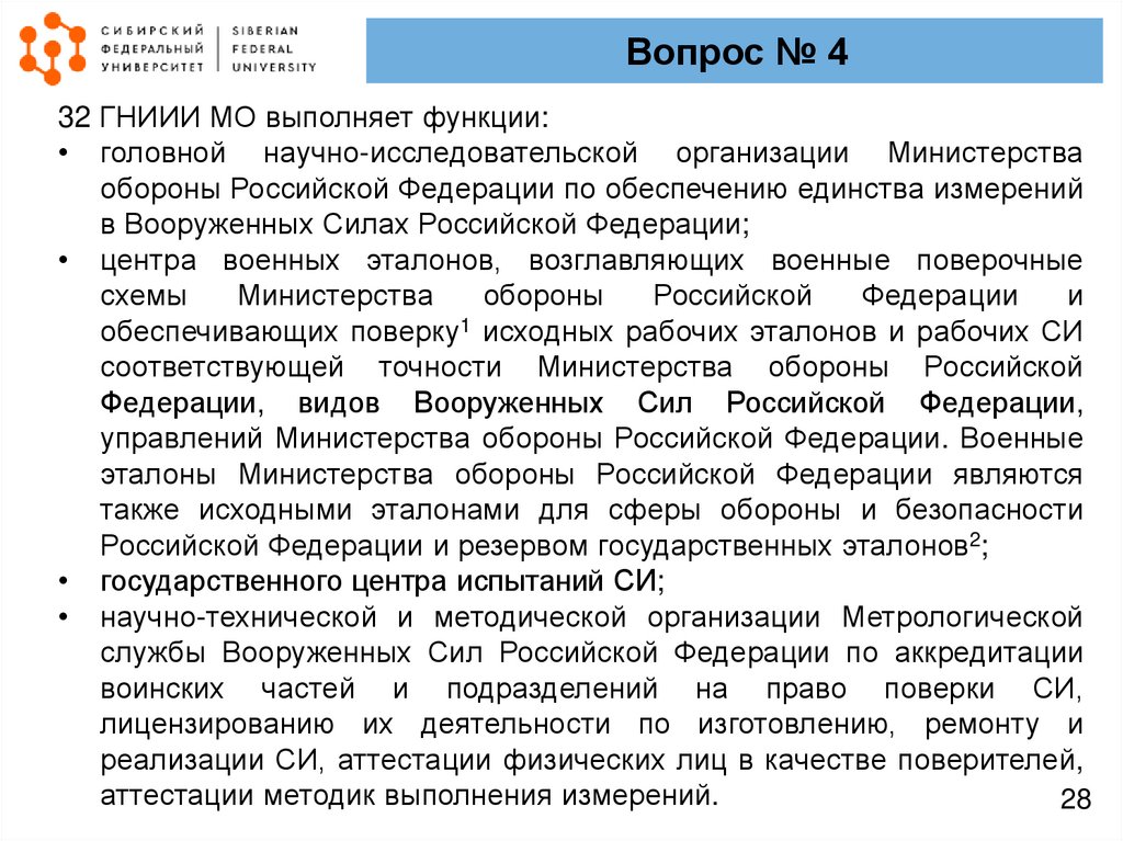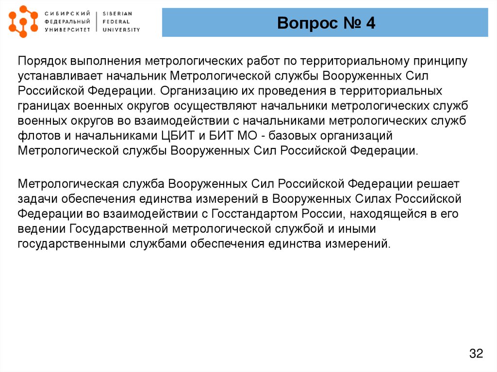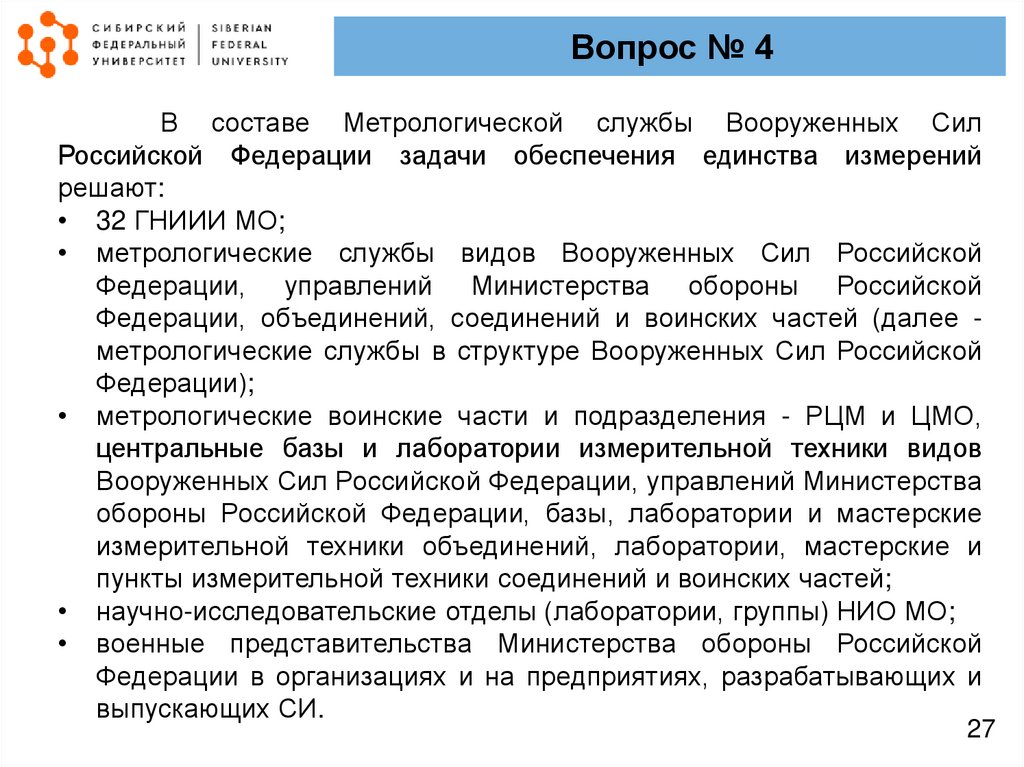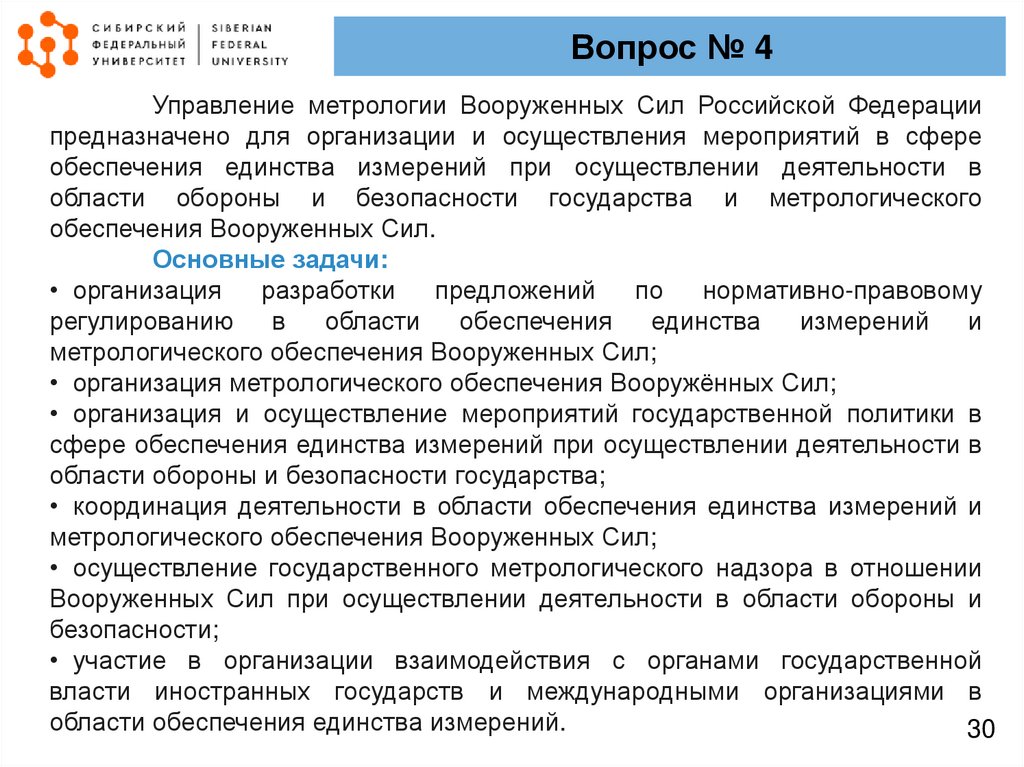 Вопрос № 4Управление метрологии Вооруженных Сил Российской Федерации