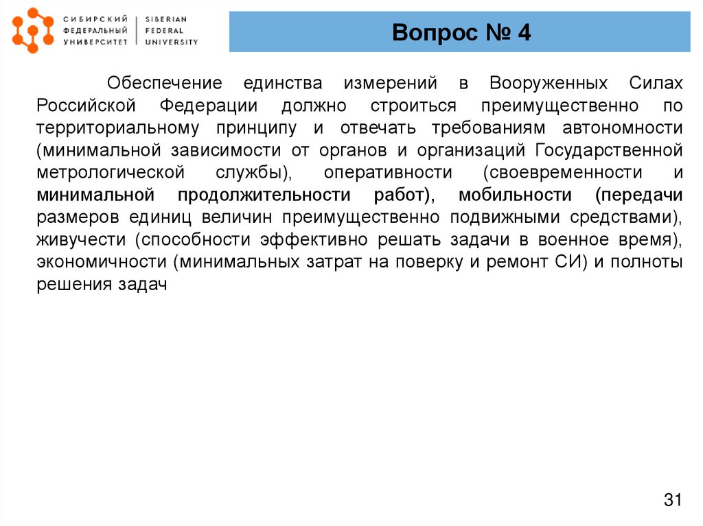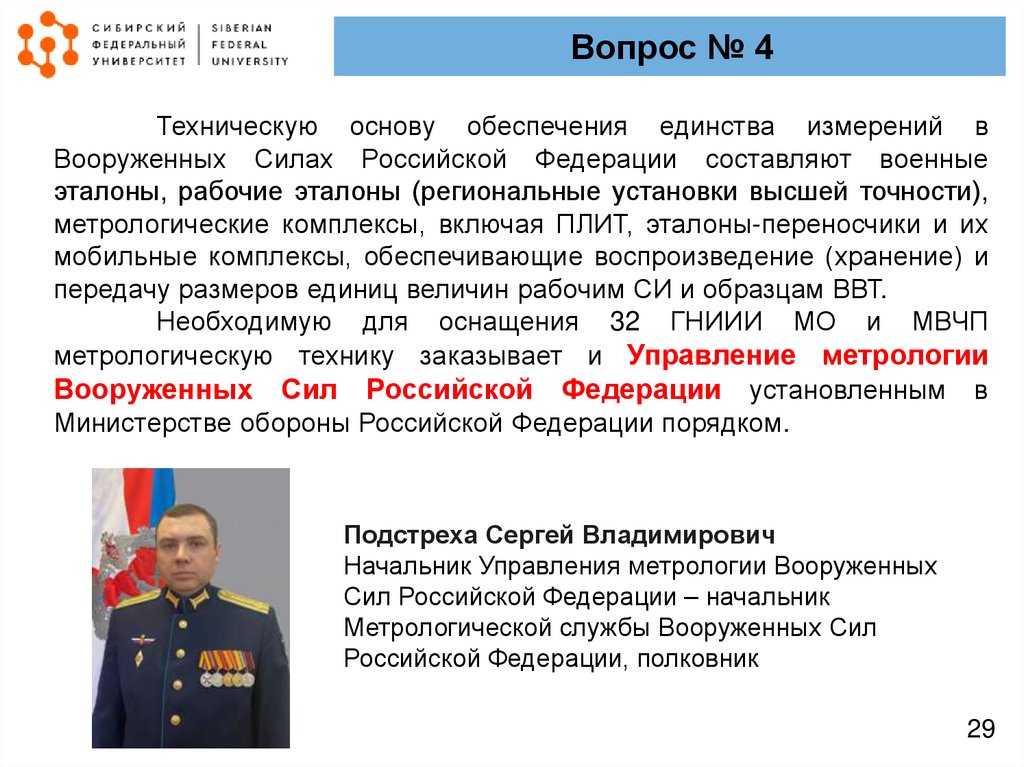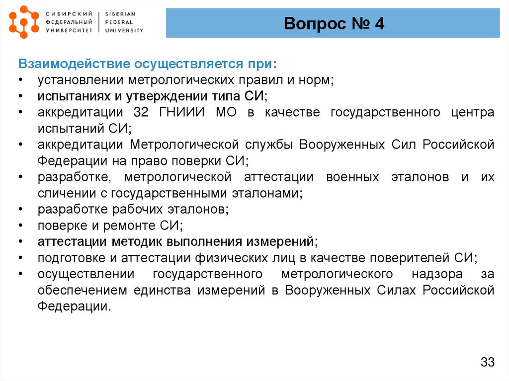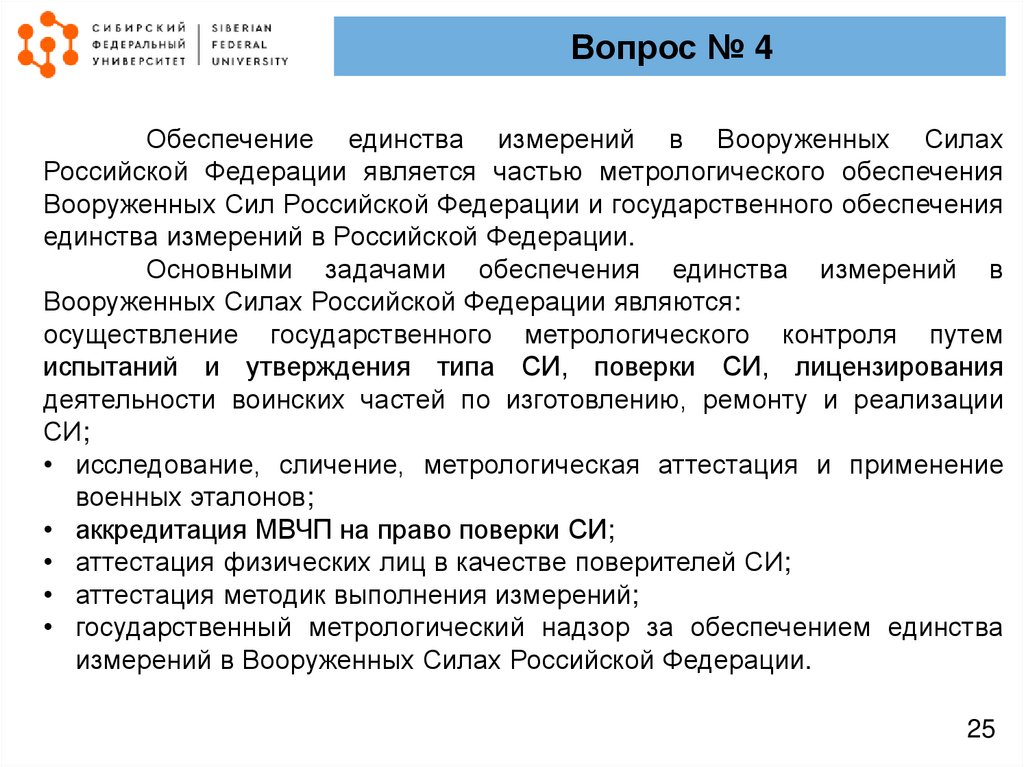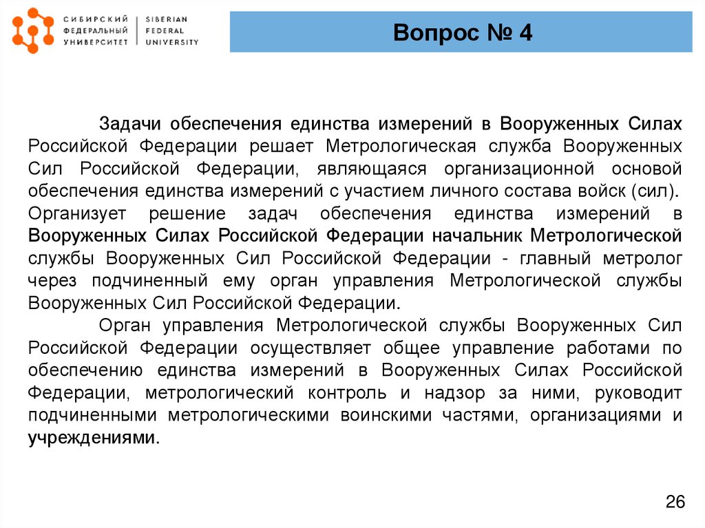 Вопрос № 4Управление метрологии Вооруженных Сил Российской Федерации