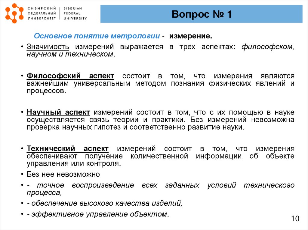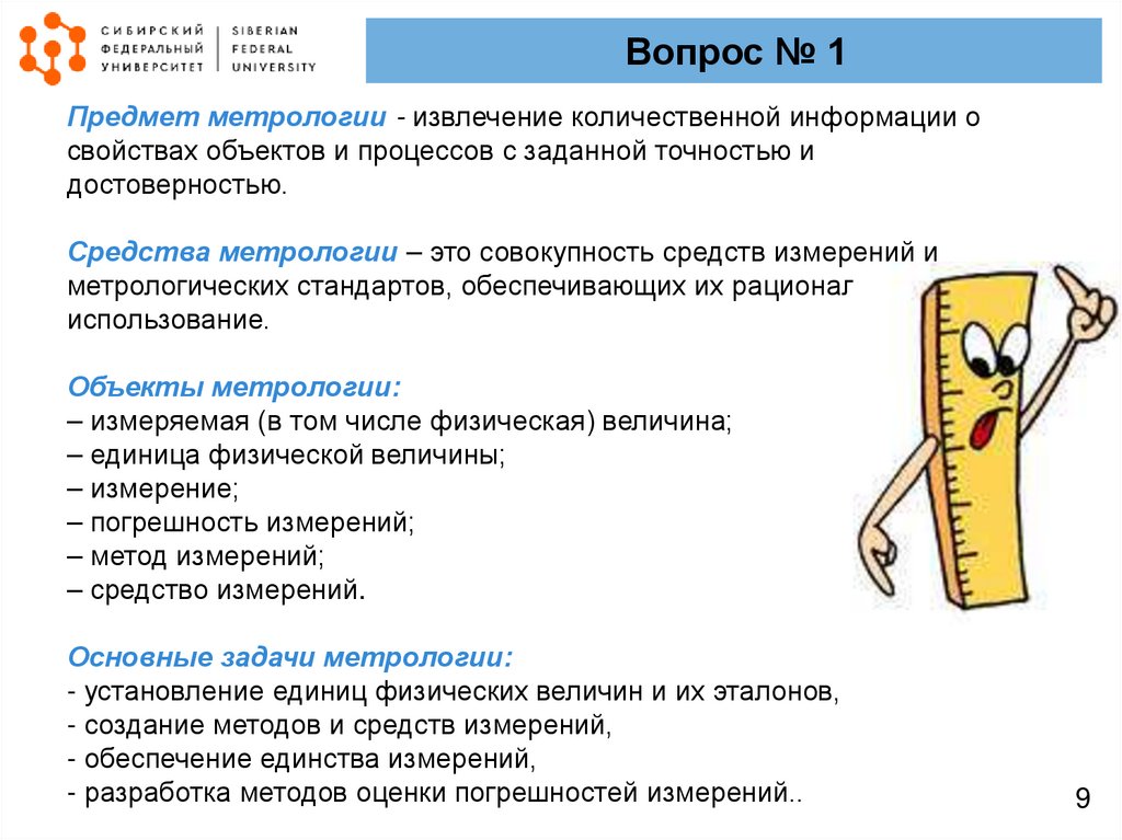 Вопрос № 1Предмет метрологии - извлечение количественной информации о