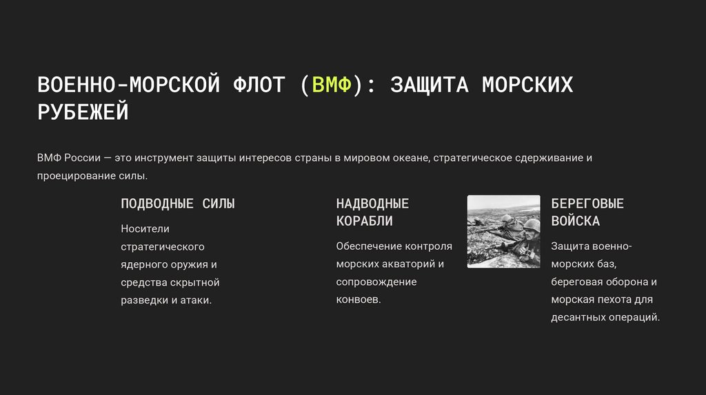 ВОЕННО-МОРСКОЙ ФЛОТ (ВМФ): ЗАЩИТА МОРСКИХРУБЕЖЕЙ