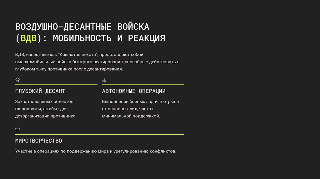 ВДВ, известные как "Крылатая пехота", представляют собой