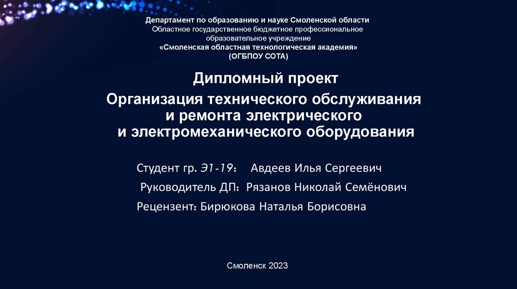 Департамент по образованию и науке Смоленской областиОбластное государственное бюджетное профессиональное
