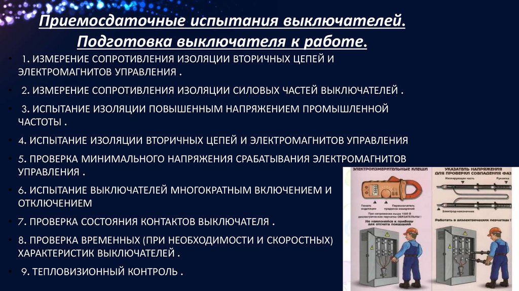 Приемосдаточные испытания выключателей.Подготовка выключателя к работе.