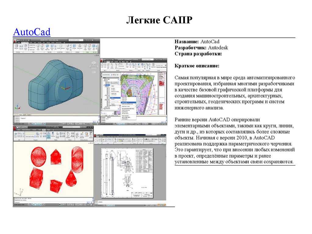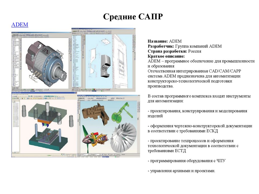 Функции, характеристики ипримеры CAE/CAD/CAM-систем.