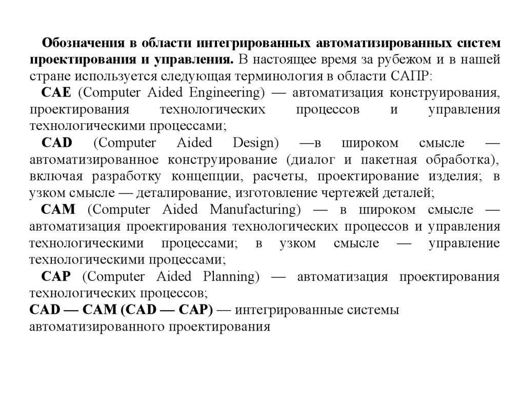 Обозначения в области интегрированных автоматизированных системпроектирования и управления. В настоящее время за рубежом и в нашей