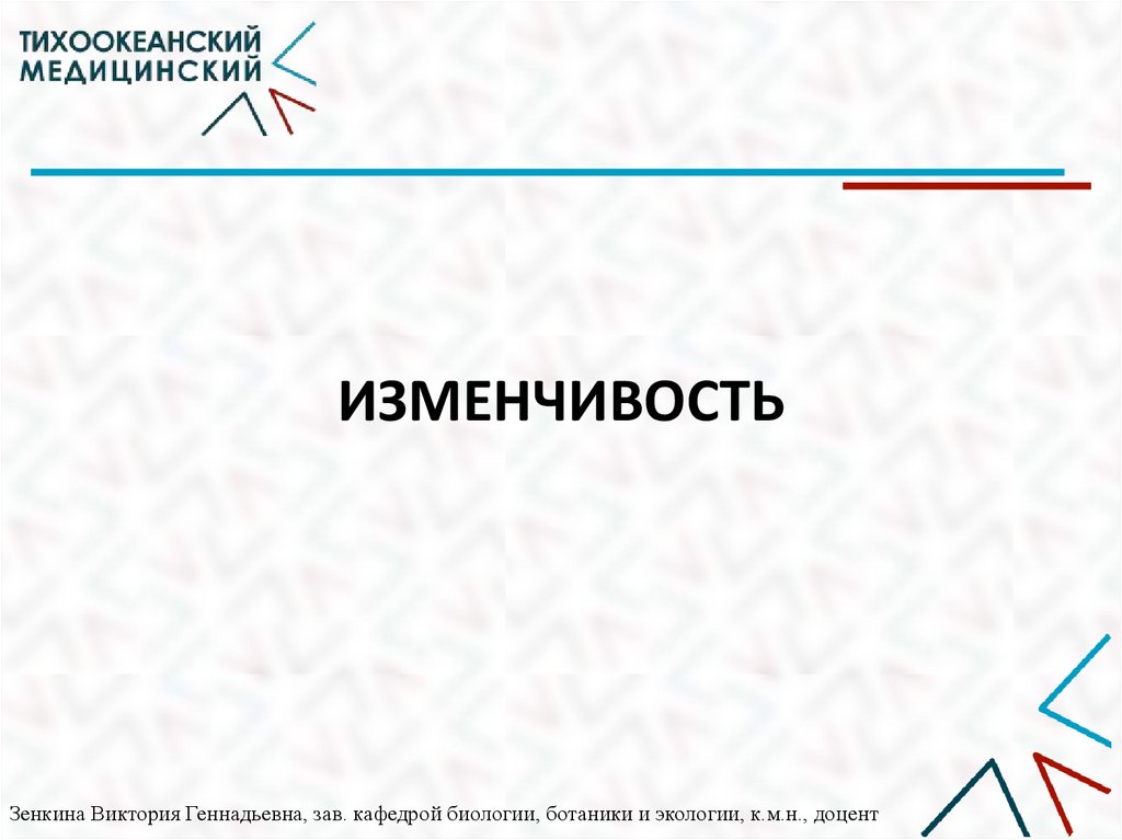 ИЗМЕНЧИВОСТЬЗенкина Виктория Геннадьевна, зав. кафедрой биологии, ботаники и экологии, к.м.н., доцент