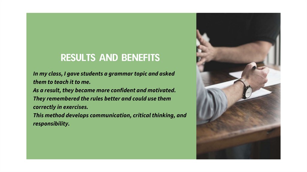 RESULTS AND BENEFITSIn my class, I gave students a grammar topic and asked