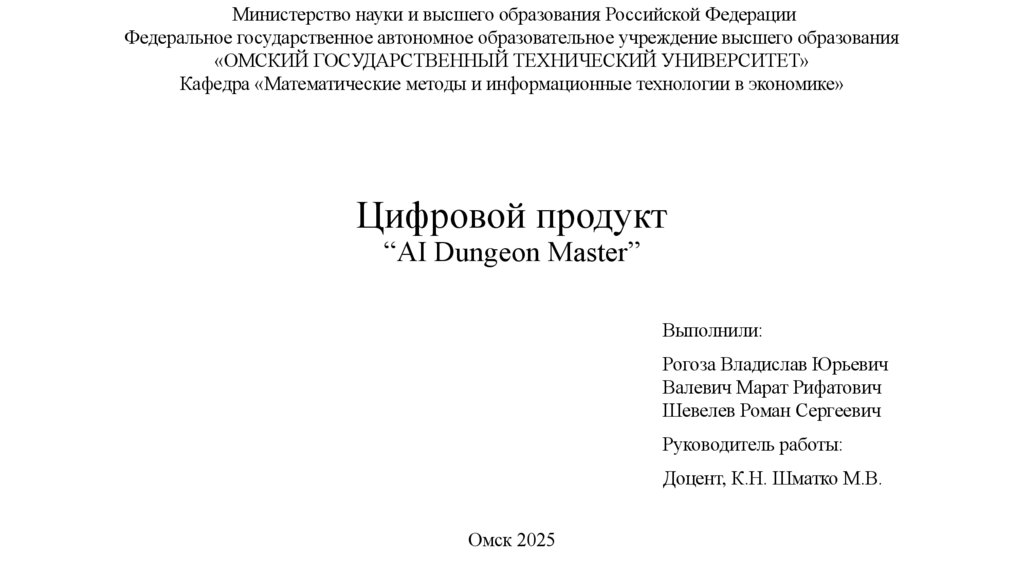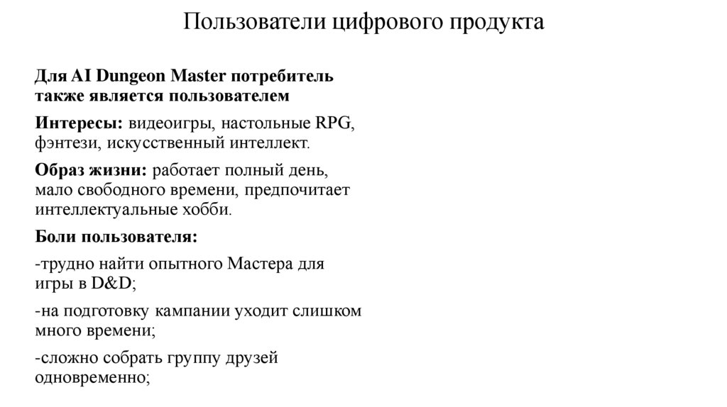 Пользователи цифрового продуктаДля AI Dungeon Master потребитель