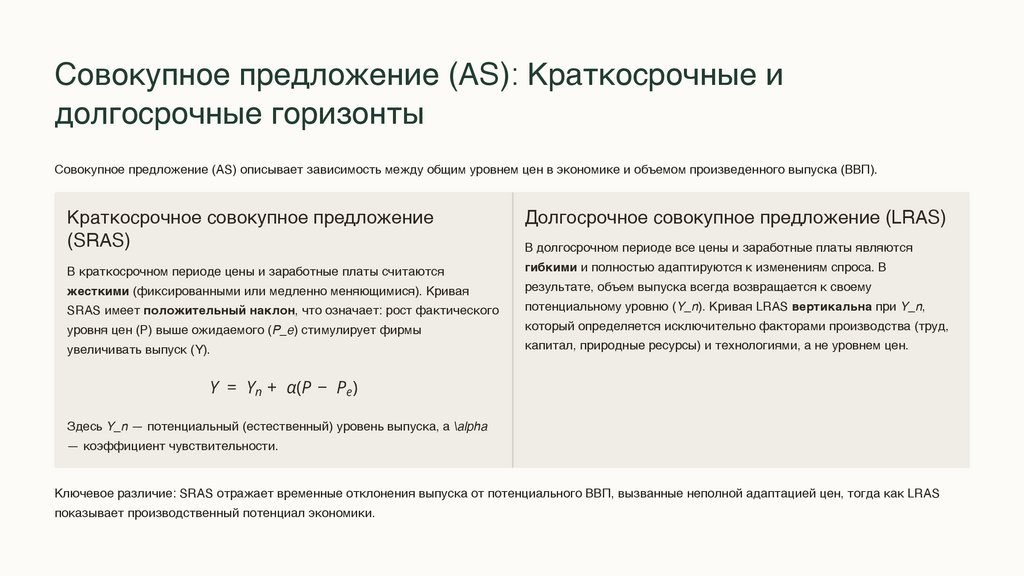Совокупное предложение (AS): Краткосрочные идолгосрочные горизонты