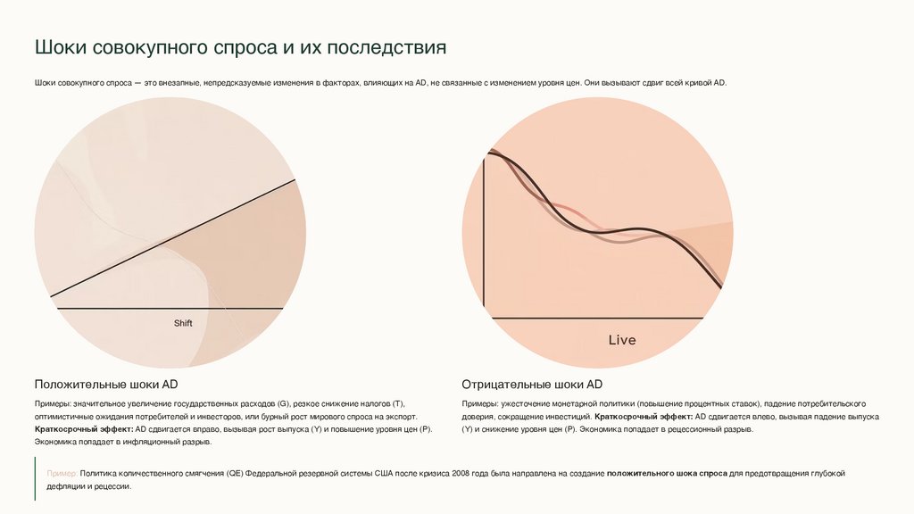 Пример: Политика количественного смягчения (QE) Федеральной резервной системы США после кризиса 2008 года была направлена на создание положительного шока спроса для предотвращения глубокой