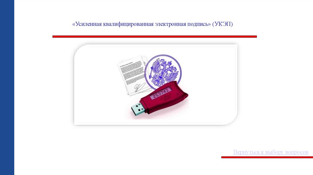 «Усиленная квалифицированная электронная подпись» (УКЭП)Вернуться к выбору вопросов