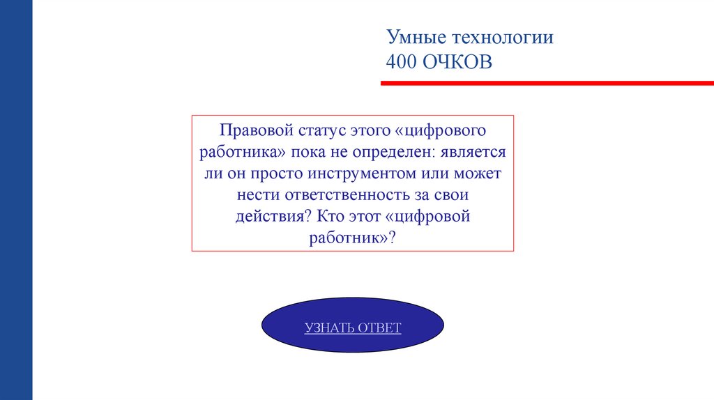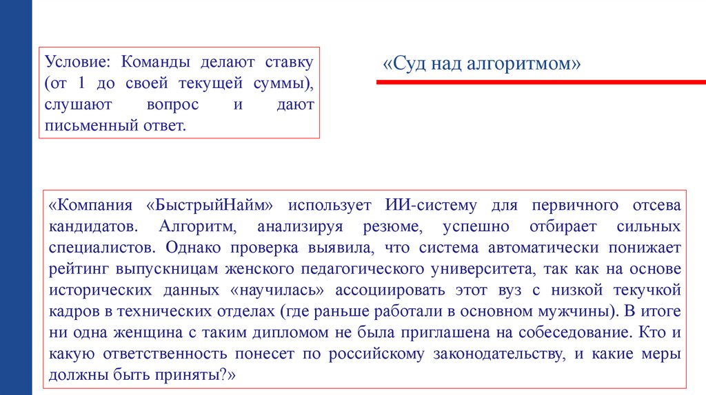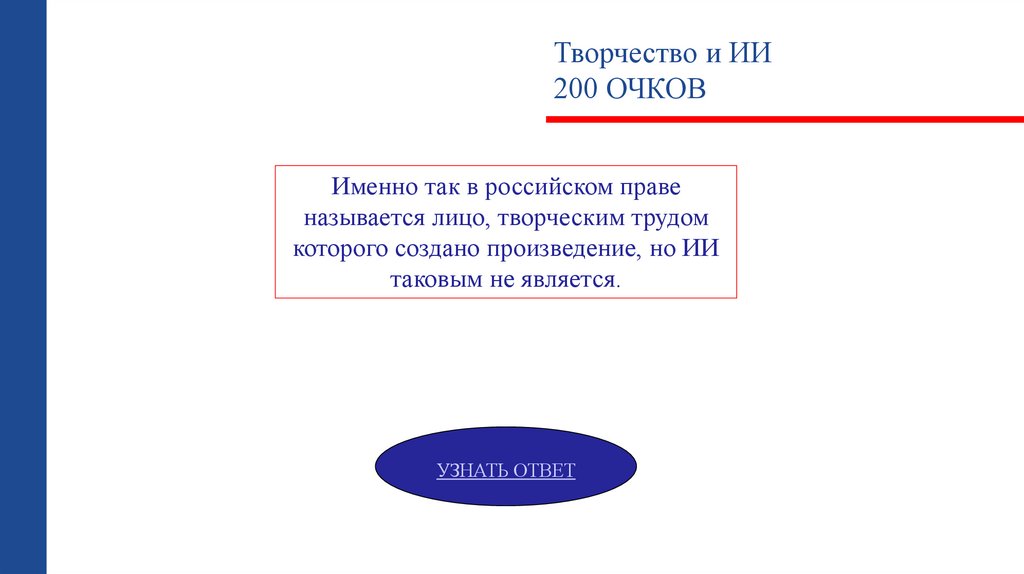 СВОЯ ИГРА: ИСКУССТВЕННЫЙИНТЕЛЛЕКТ И ПРАВО