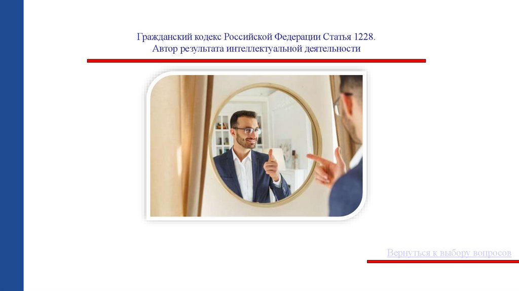 Гражданский кодекс Российской Федерации Статья 1228.Автор результата интеллектуальной деятельности