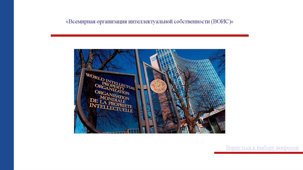 «Всемирная организация интеллектуальной собственности (ВОИС)»Вернуться к выбору вопросов