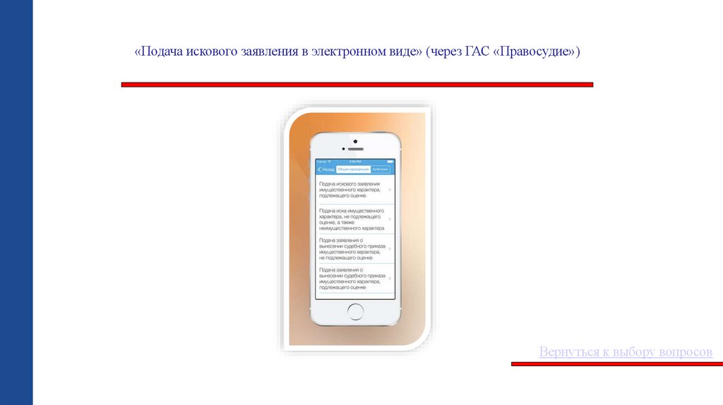 «Подача искового заявления в электронном виде» (через ГАС «Правосудие»)Вернуться к выбору вопросов