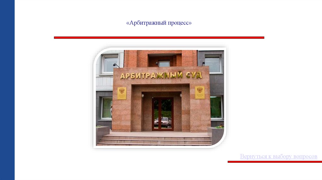 «Арбитражный процесс»Вернуться к выбору вопросов