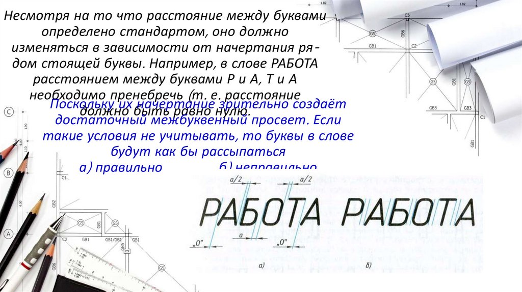 Несмотря на то что расстояние между буквамиопределено стандартом, оно должно
