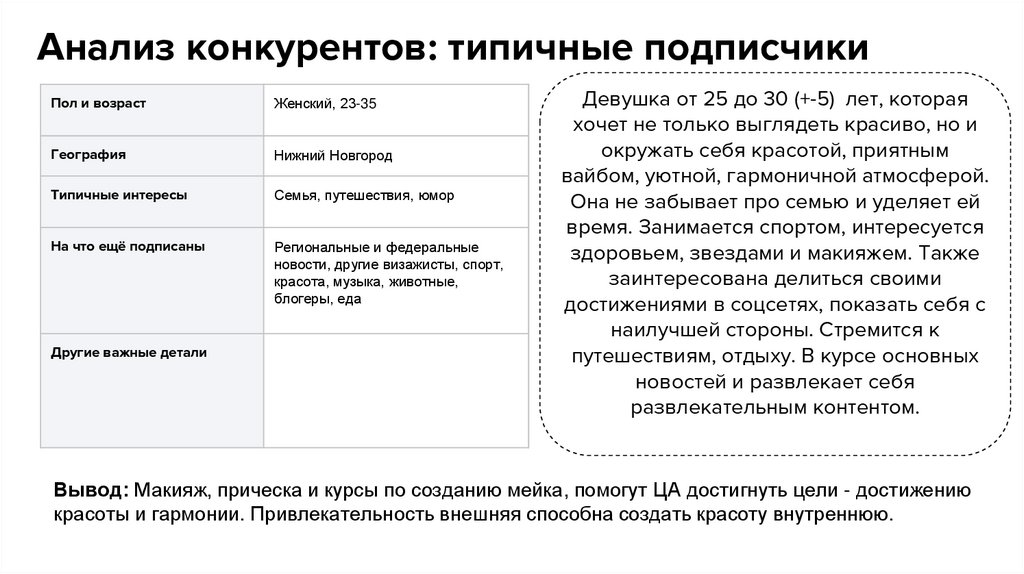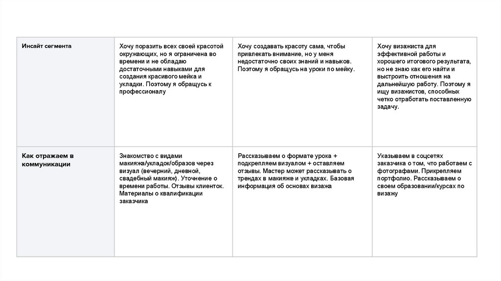Также заказчик хочет развивать направление “уроков по макияжу”. ЦА по этому направлению не