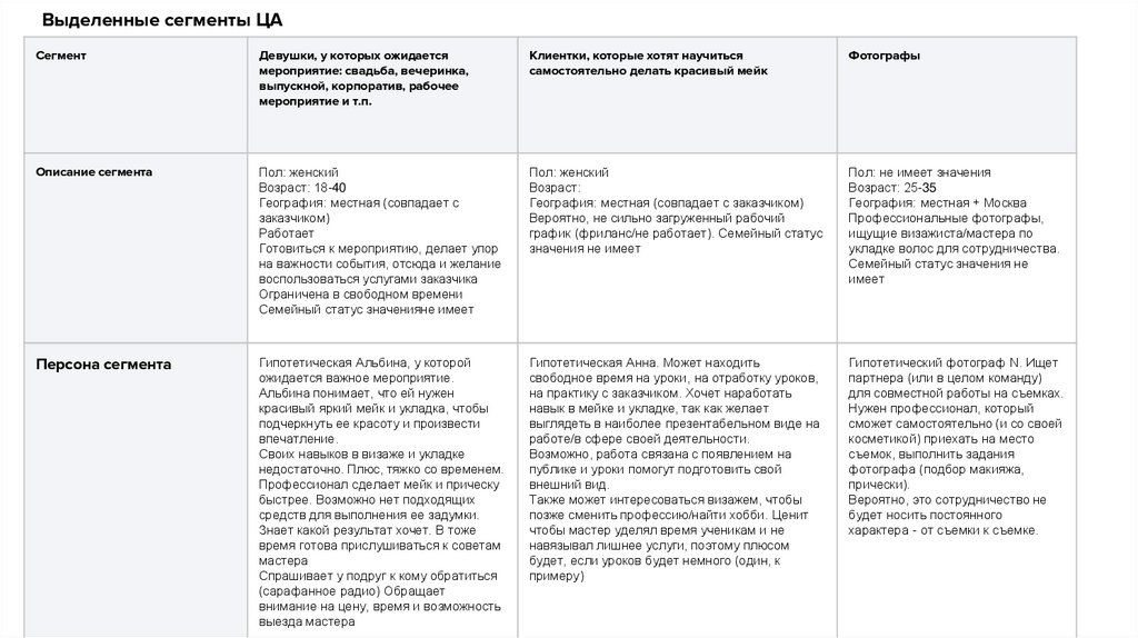 ЦА у визажистов/стилистов по волосам широкая. Явно выделяются две подкатегории: 1) те женщины,