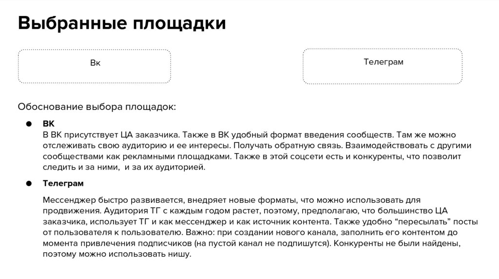 сообществами как рекламными площадками. Также в этой соцсети есть и конкуренты, что позволит