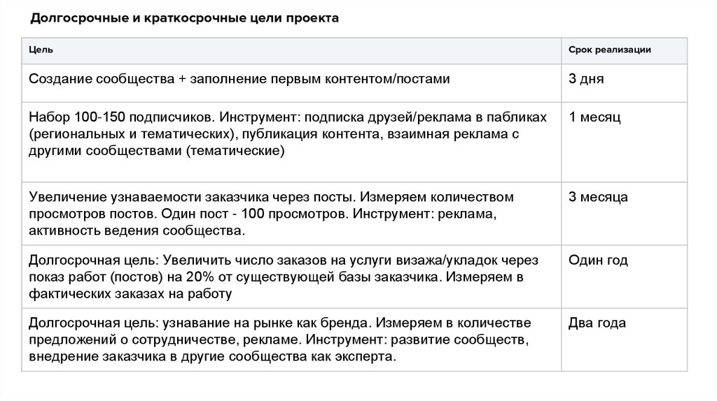 Долгосрочная цель: узнавание на рынке как бренда. Измеряем в количестве