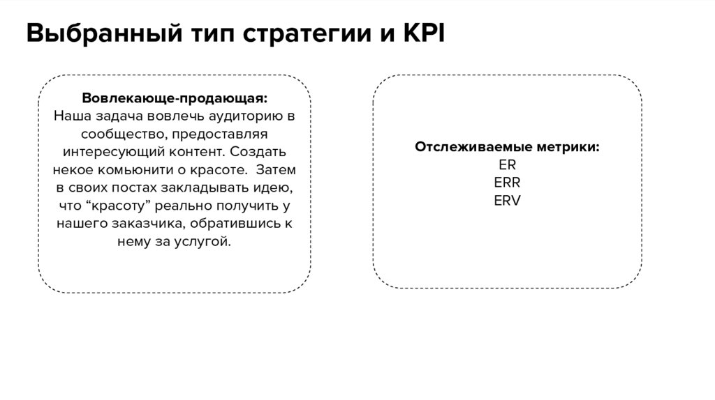 Выбранный тип стратегии и KPIВовлекающе-продающая: