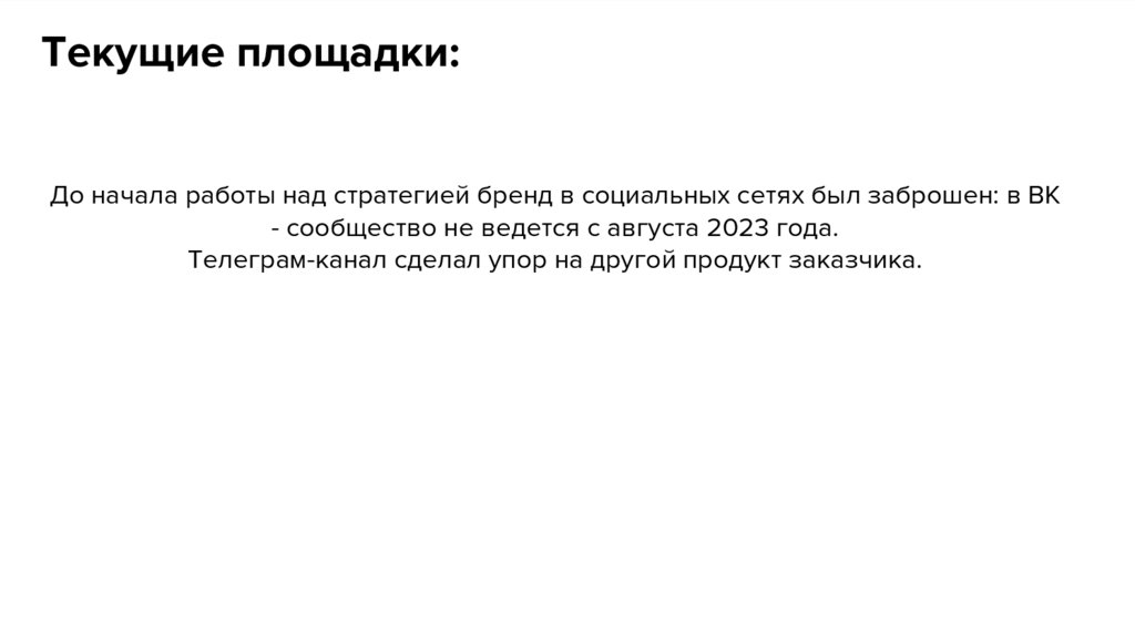 Текущие площадки:До начала работы над стратегией бренд в социальных сетях был заброшен: в ВК