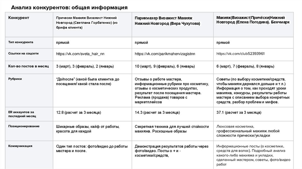Конкуренция на рынке визажистов/преподавателей по мейку в Нижнем Новгороде представлена.
