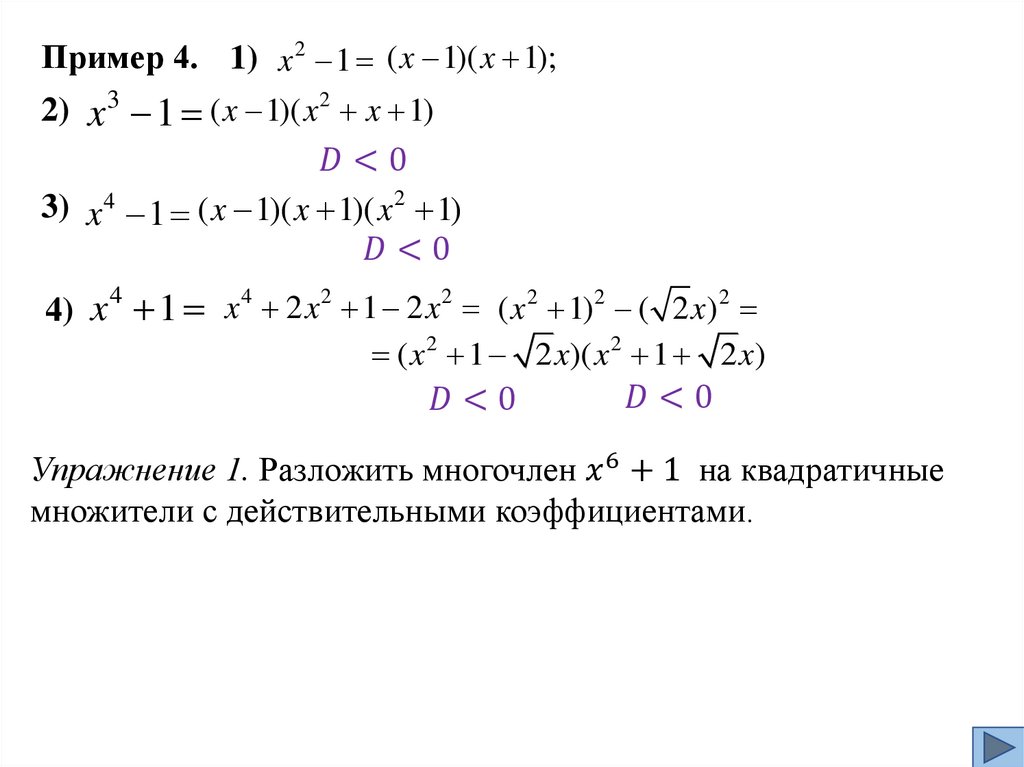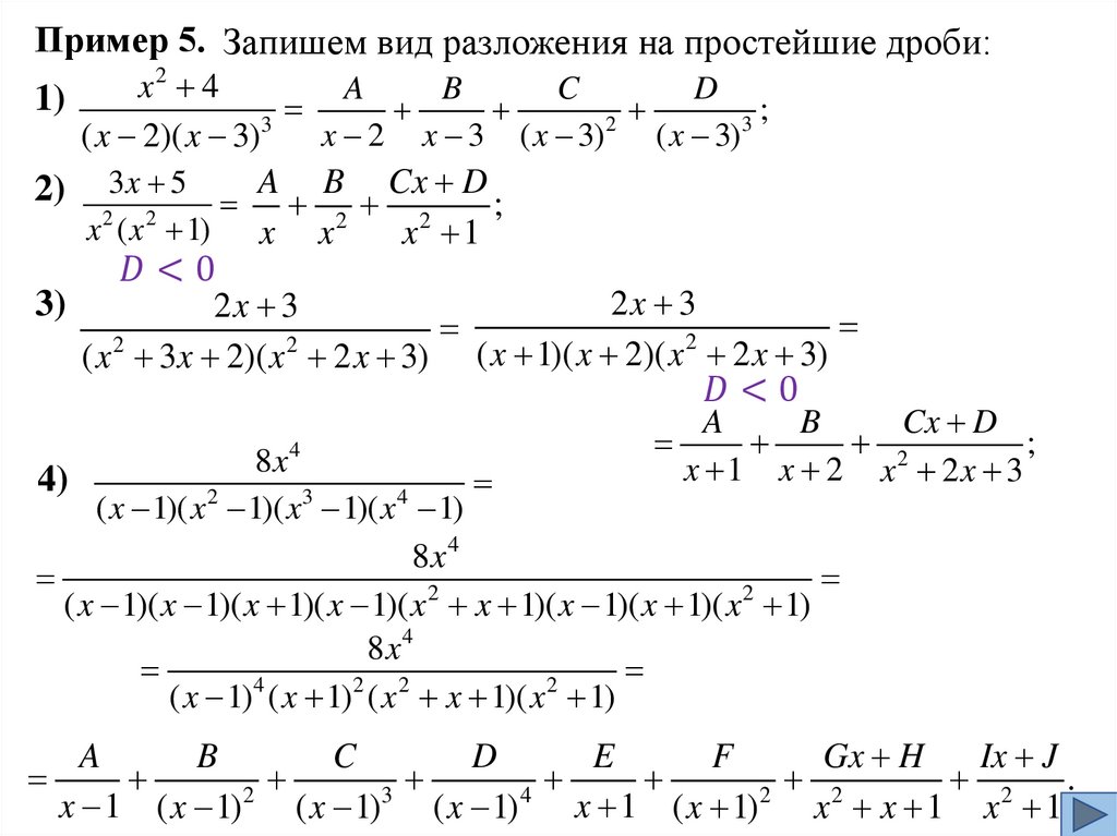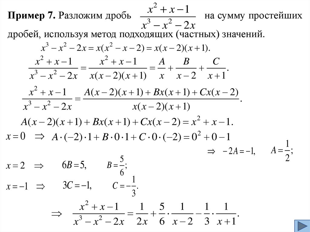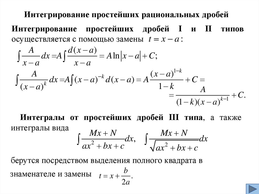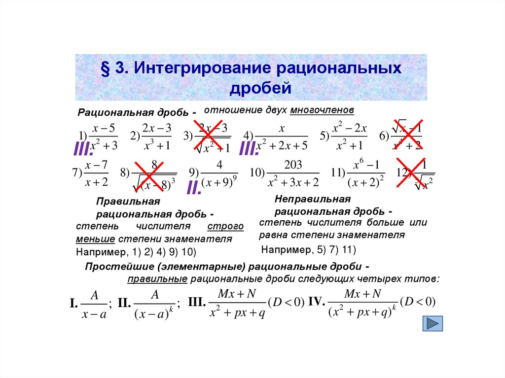 Опр. 3. Простейшими, или элементарными,рациональными дробями называются правильные дроби