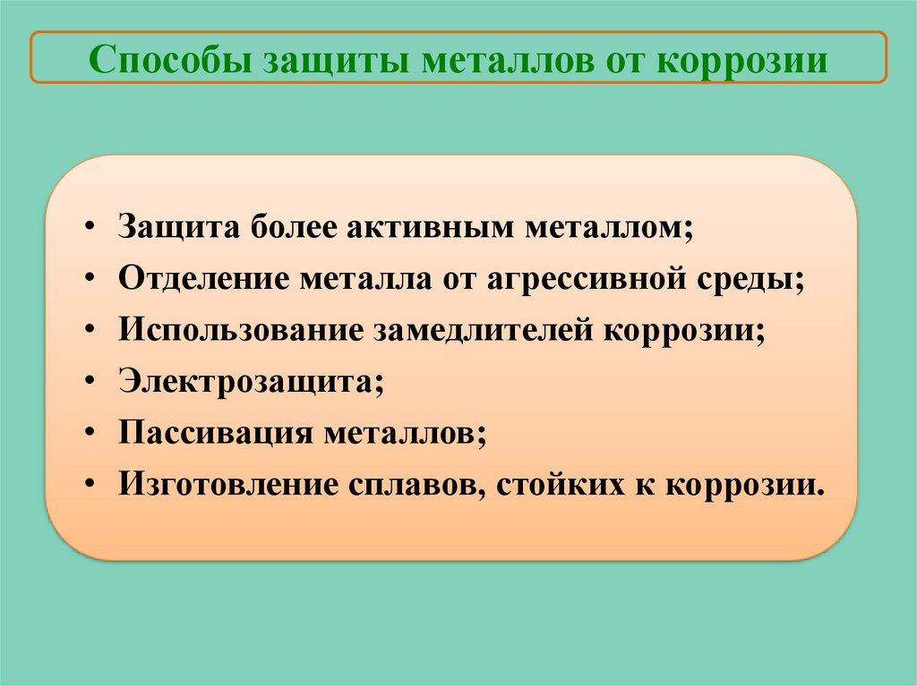 Способы защиты металлов от коррозии• Защита более активным металлом;