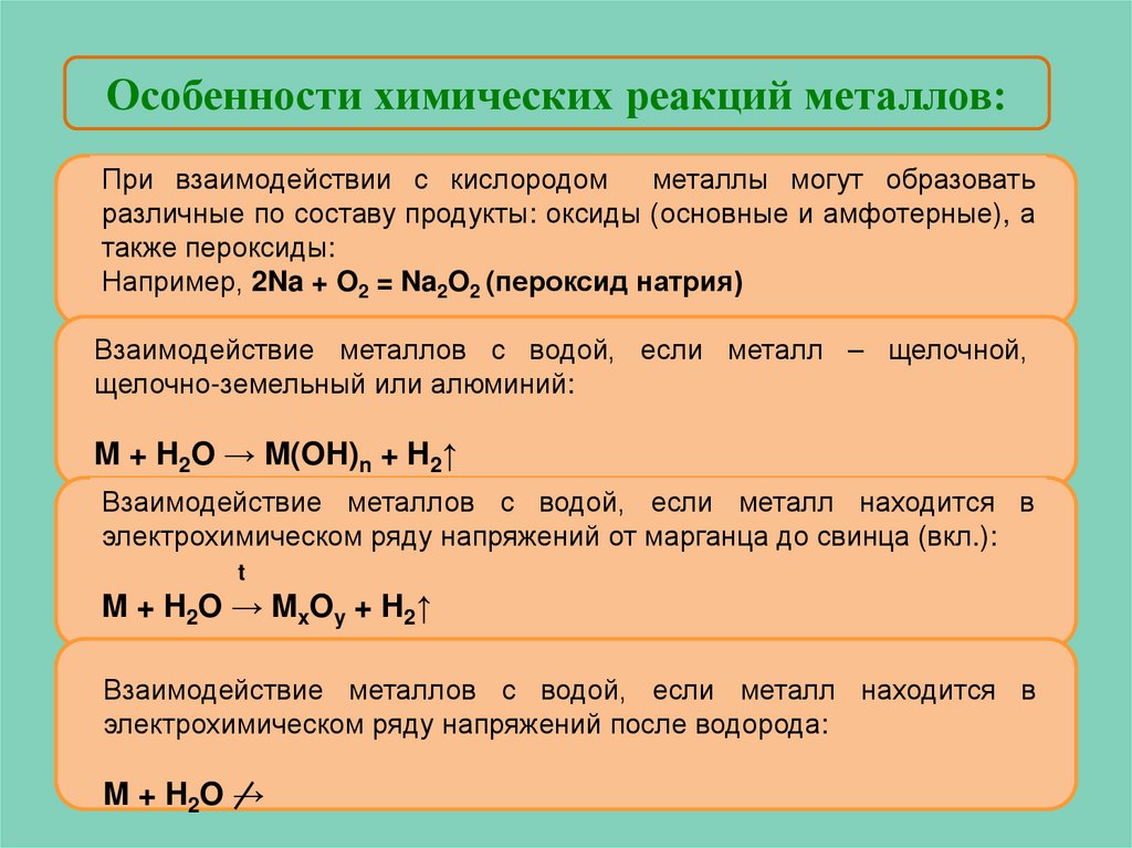 Особенности химических реакций металлов:При взаимодействии с кислородом