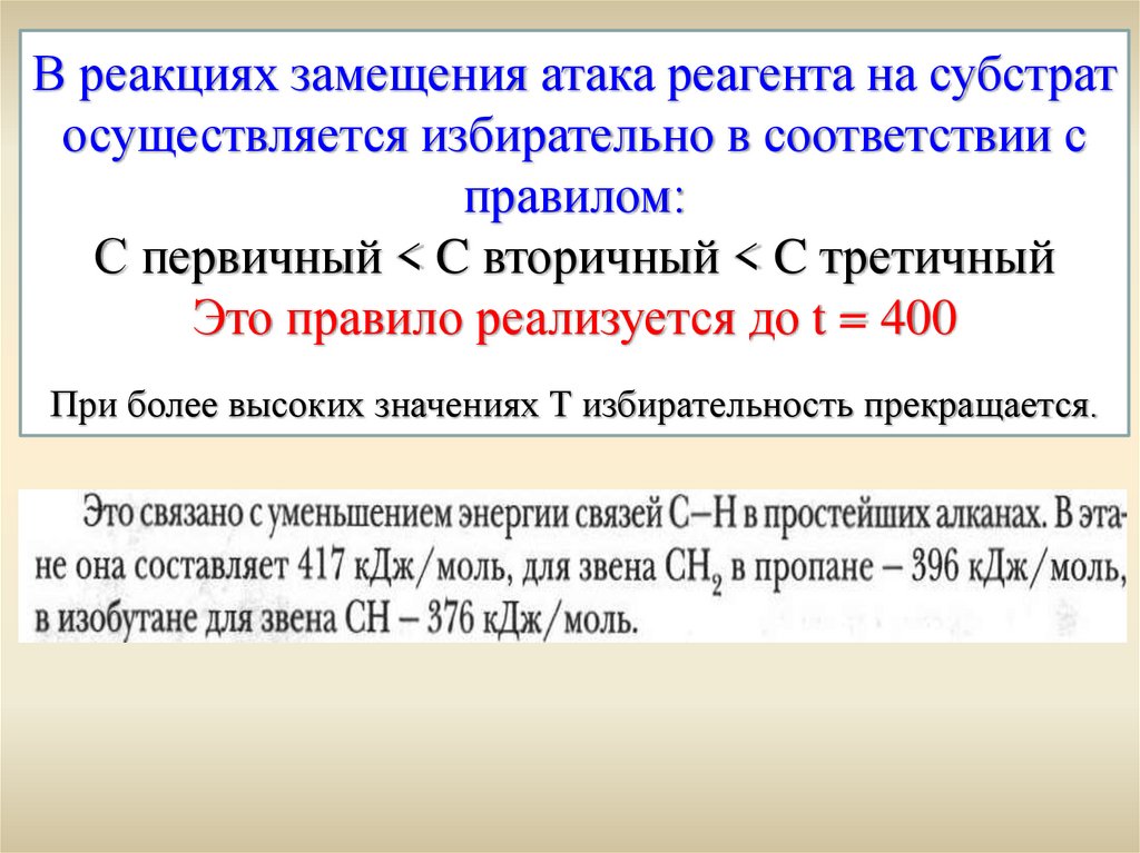 В реакциях замещения атака реагента на субстратосуществляется избирательно в соответствии с