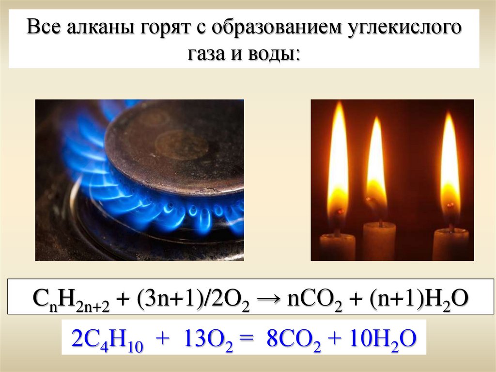 CnH2n+2 + (3n+1)/2O2 → nCO2 + (n+1)H2O