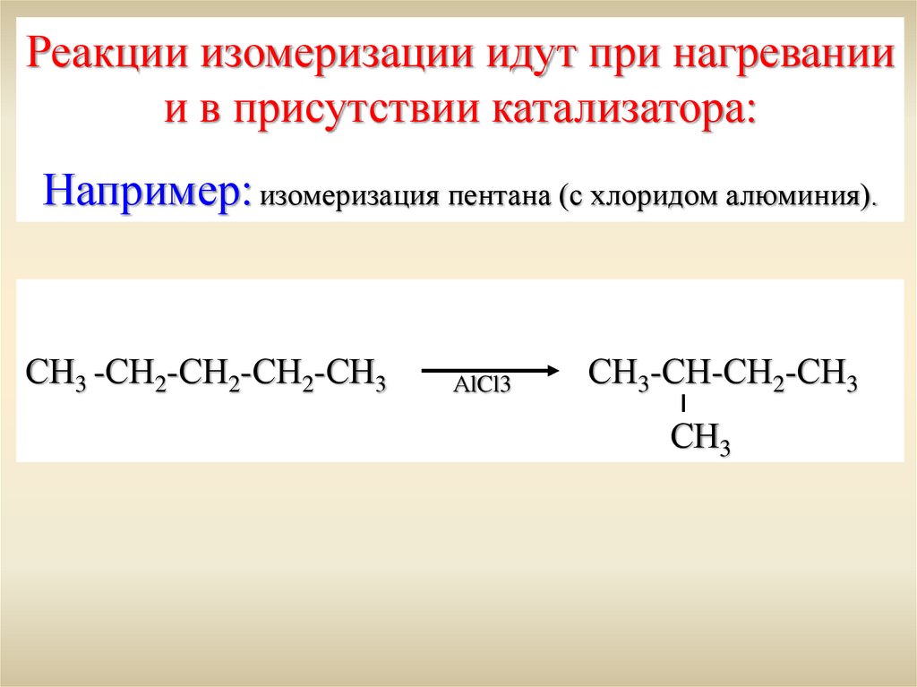 Реакции изомеризации идут при нагреваниии в присутствии катализатора: