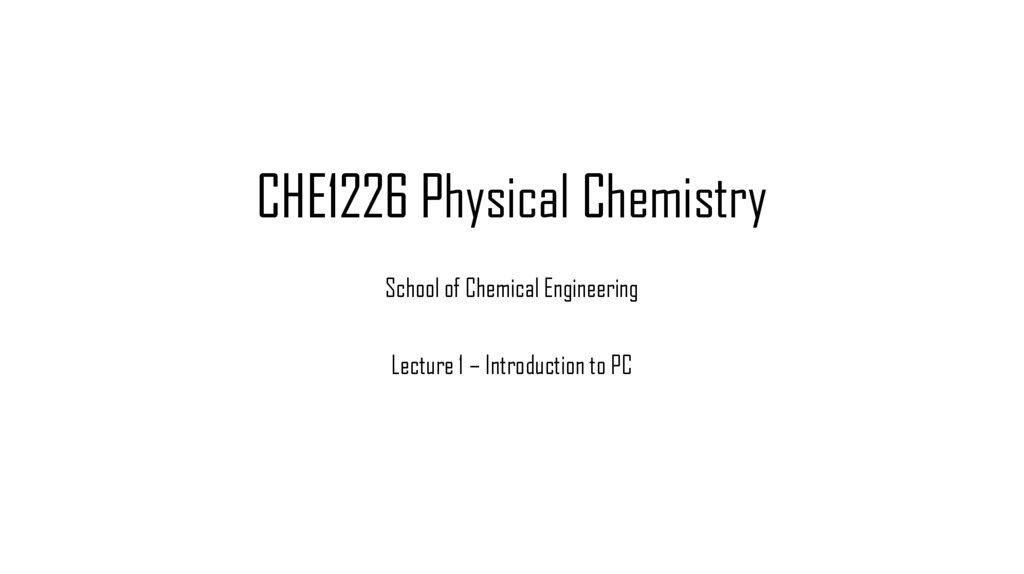 School of Chemical EngineeringLecture 1 – Introduction to PC